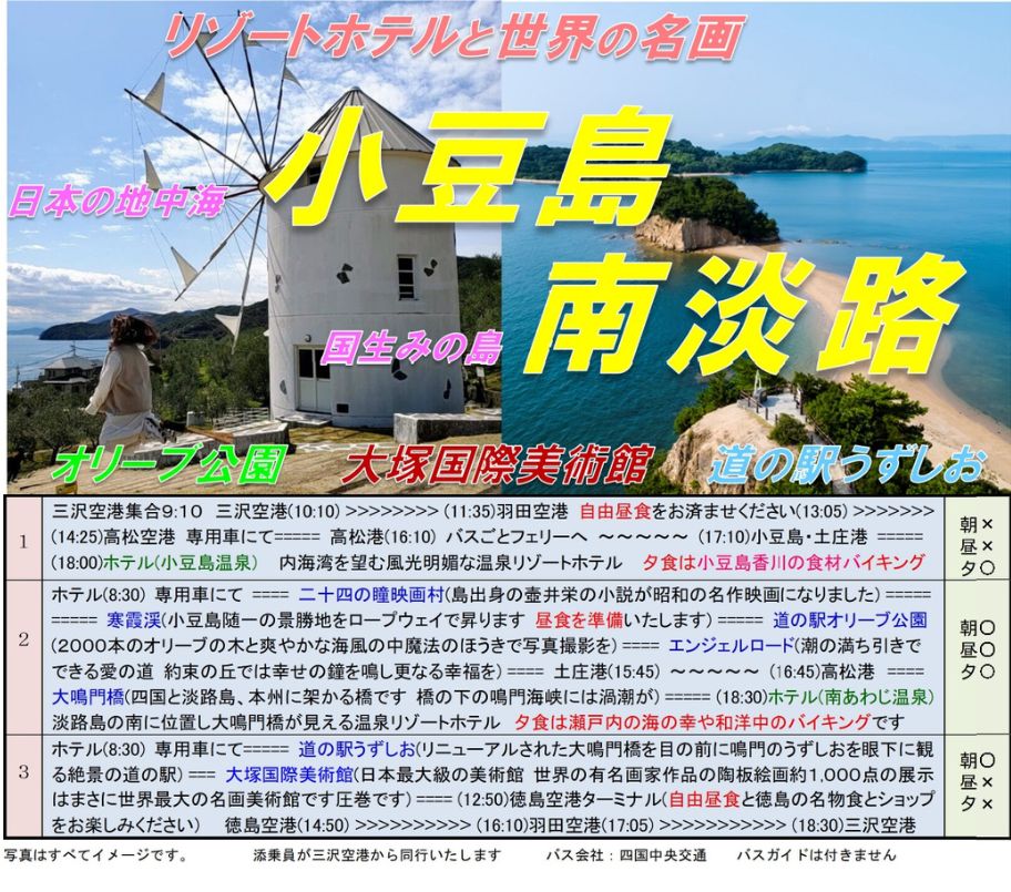 【往路三沢空港=羽田=高松/復路徳島空港=羽田=三沢】小豆島、南淡路、大塚国際美術館、道の駅うずしおほか
